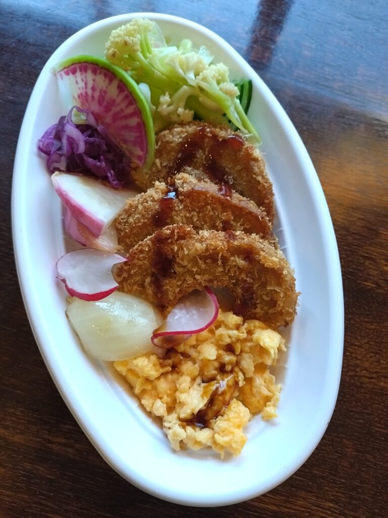 本日のおすすめメニューは「くるま麩のカツ丼風」です。